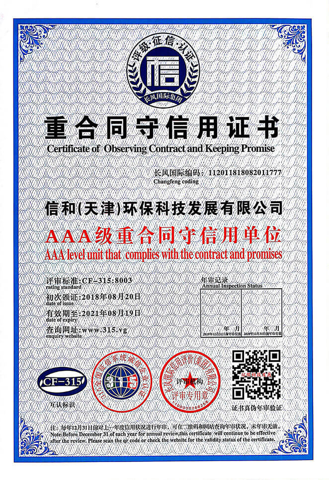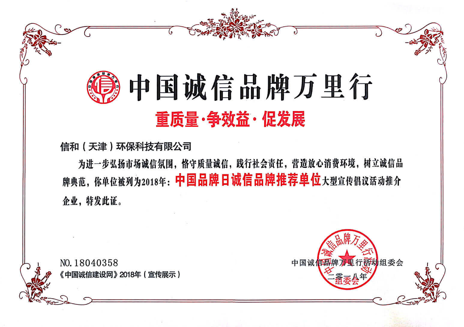 “質(zhì)量就是生命”。信和重質(zhì)量、守信用,被中國(guó)誠(chéng)信品牌萬(wàn)里行推薦“誠(chéng)信示范單位”、“AAA資信等級(jí)”、“AAA級(jí)誠(chéng)信經(jīng)營(yíng)示范單位”、“誠(chéng)信經(jīng)理人榮譽(yù)證書(shū)”、“誠(chéng)信企業(yè)家榮譽(yù)證書(shū)”、“中國(guó)產(chǎn)品質(zhì)量放心達(dá)標(biāo)企業(yè)”、“誠(chéng)信品牌聯(lián)盟會(huì)員單位”、“中國(guó)質(zhì)量誠(chéng)信AAA級(jí)品牌企業(yè)”、“中國(guó)百?gòu)?qiáng)優(yōu)秀企業(yè)”、“節(jié)能環(huán)保推廣產(chǎn)品”、“全國(guó)科技創(chuàng)新企業(yè)”等榮譽(yù)稱號(hào)。
